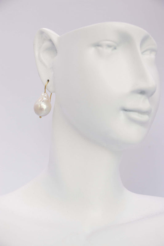 BOUCLES - COL DE CYGNE OR JAUNE ET PERLE BAROQUE D'EAU DOUCE
