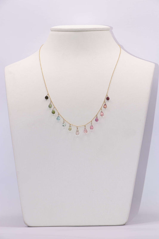 COLLIER - FINE CHAÎNE OR JAUNE 14K ET TOURMALINES