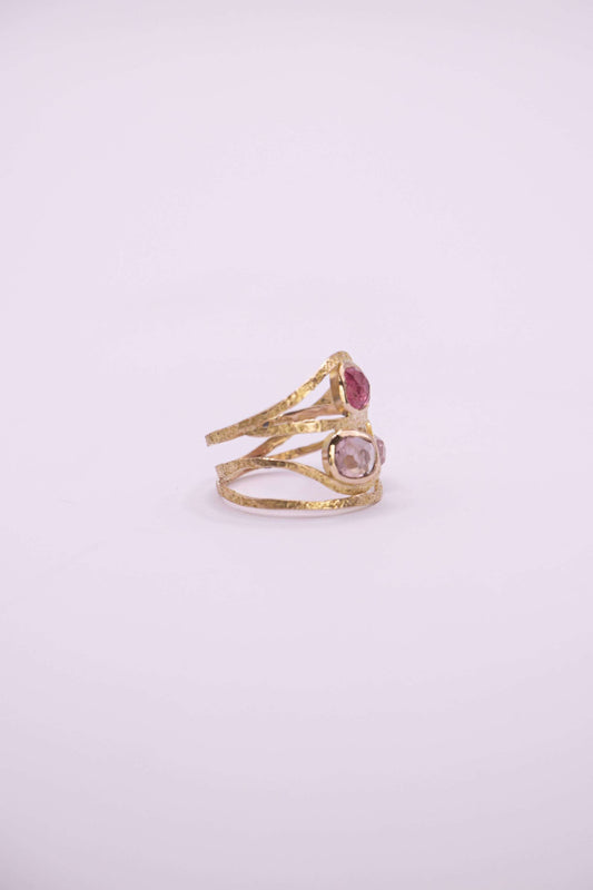 BAGUE - WAVES OR ROSE ET TOURMALINES ROSES
